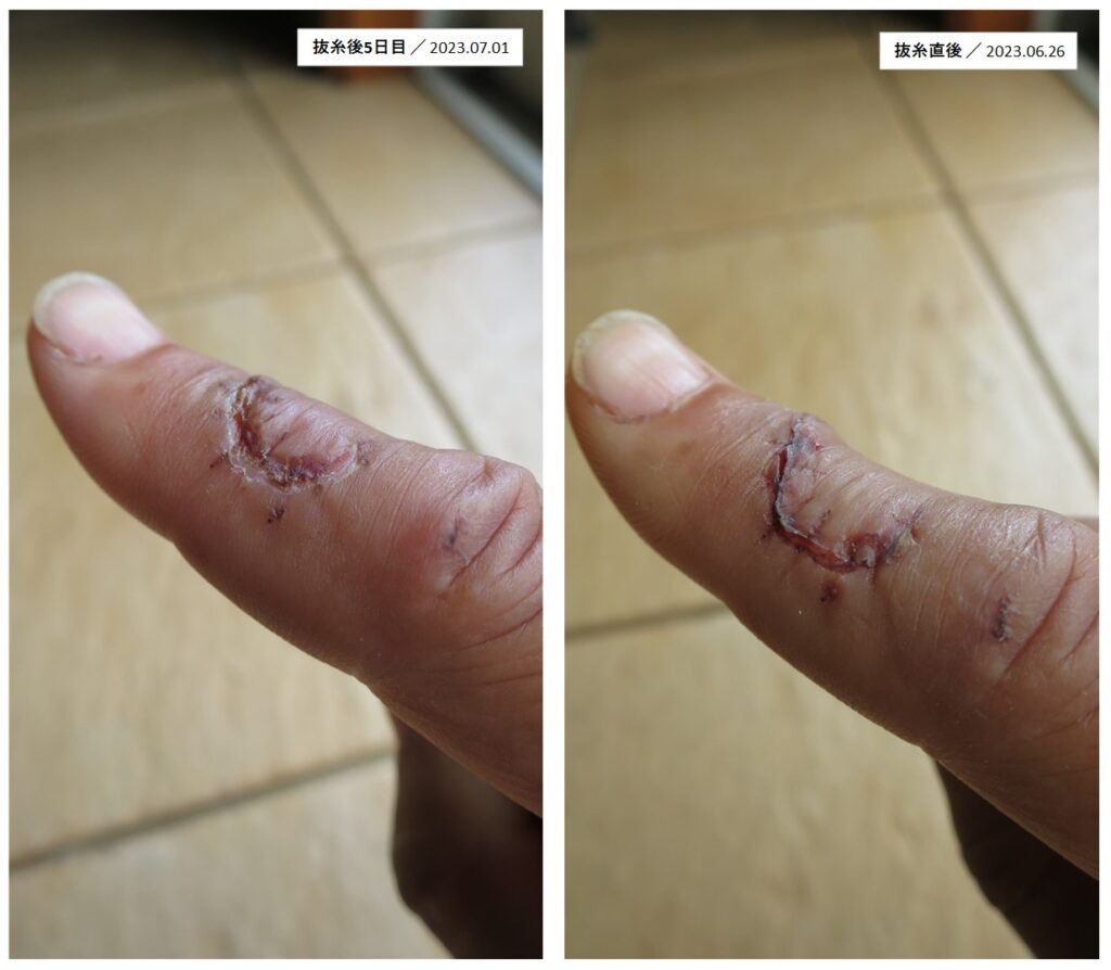 傷口が指の背側なのでチェーンソーの操作に支障はなかったのは幸いです。